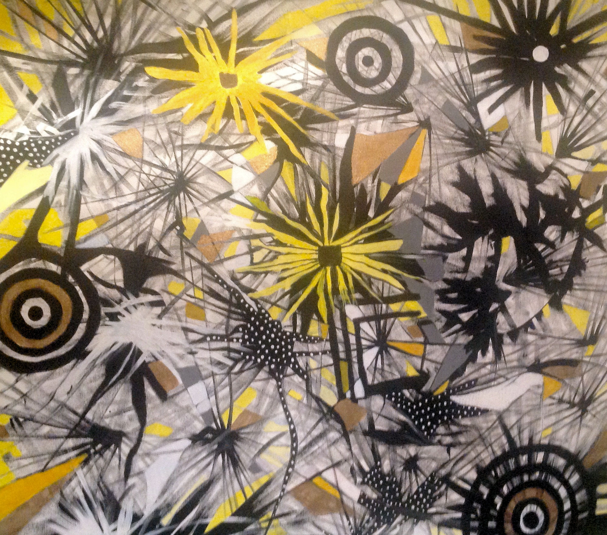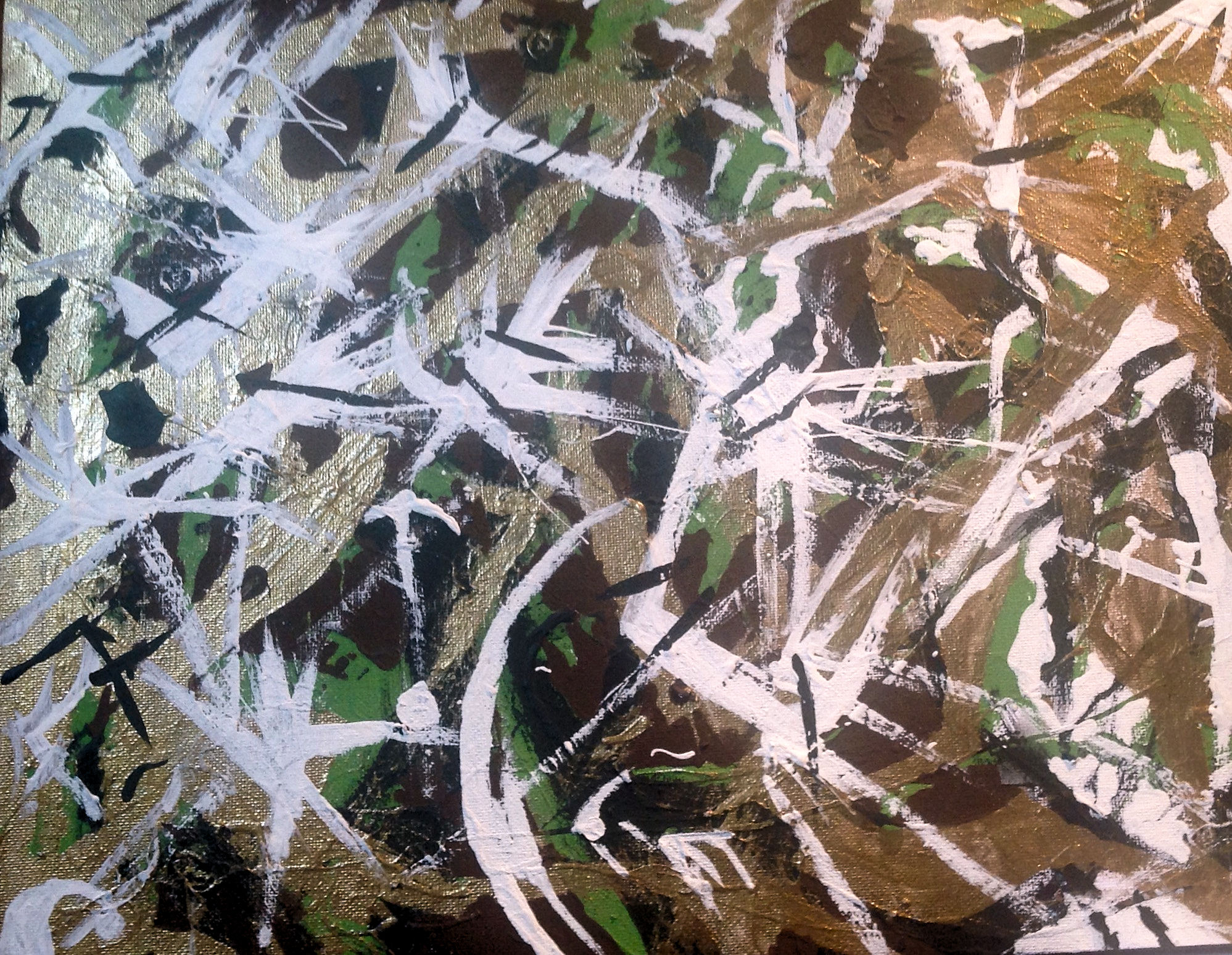 The paintings below are an extension of my art world. They are improvisations that took shape in one of my rooms in my blessed home. I have made a mess everywhere, you might still see a paint splatter or two in each room , if you look hard. I have tried to clean up, but I'm not perfect. My daughter still shakes her finger at me.